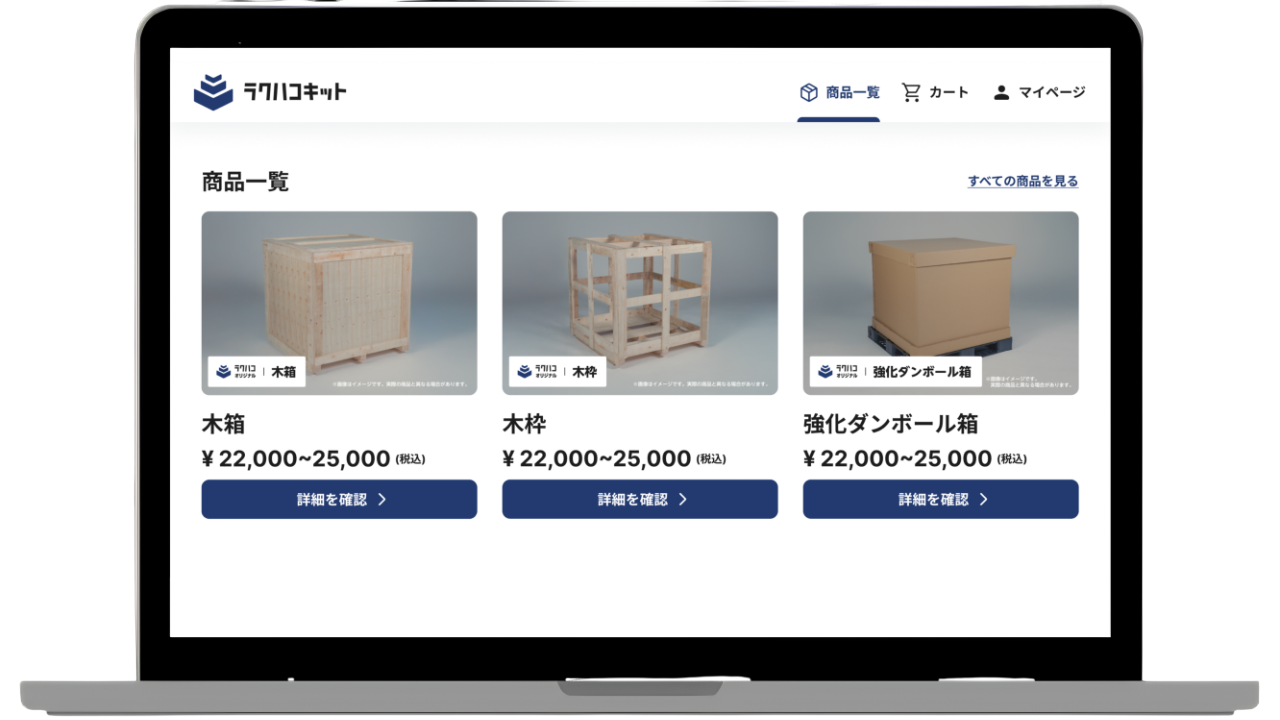 ラクハコキットの公式サイトへアクセスし、ラインナップを確認。